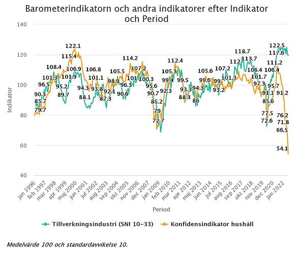 Dvs de områden där konsumenterna/kunderna börjar “spara in” om de är pessimistiska är nog ganska nervösa inför framtiden. Hör från många företag att man nu bromsar olika aktiviteter, nyanställningar, framtidssatsningar, ickekritiska investeringar osv.
