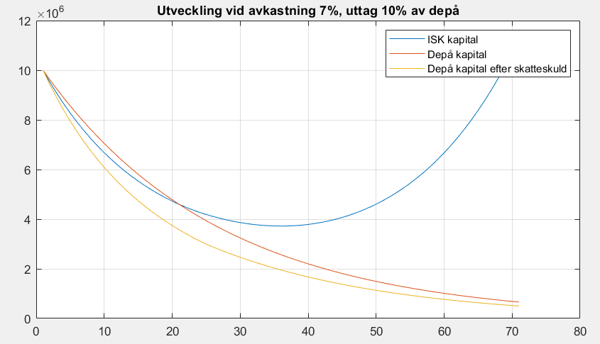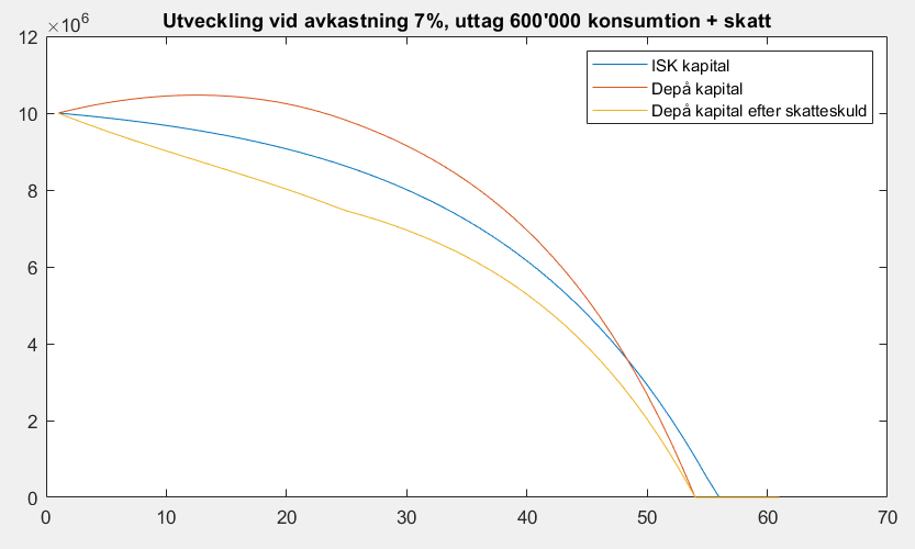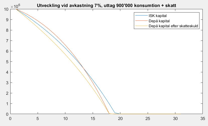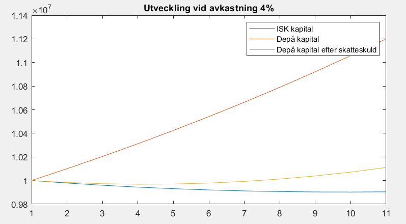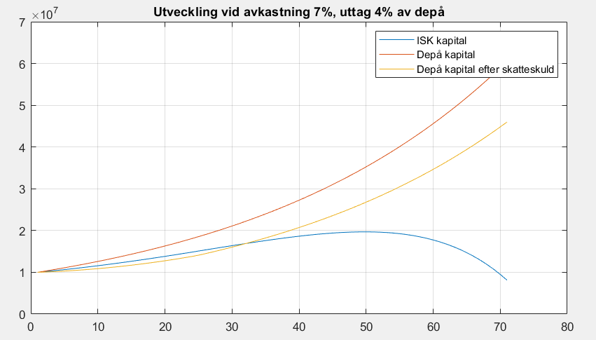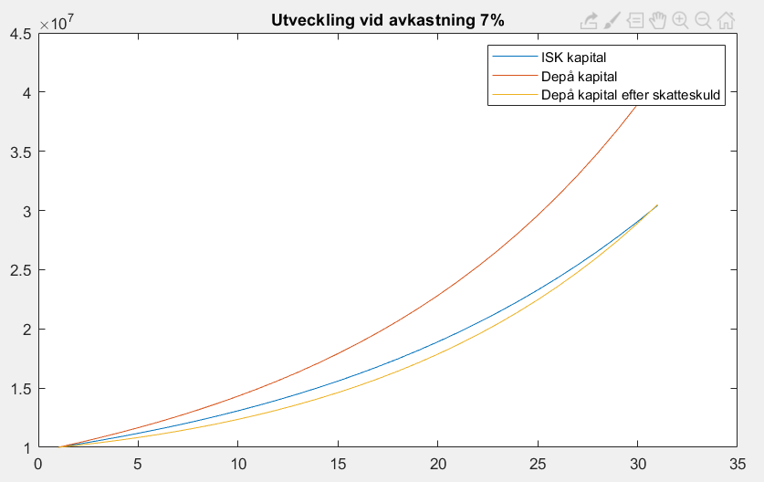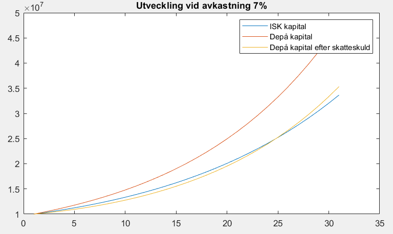 legend('ISK kapital','Depå kapital','Depå kapital efter skatteskuld')