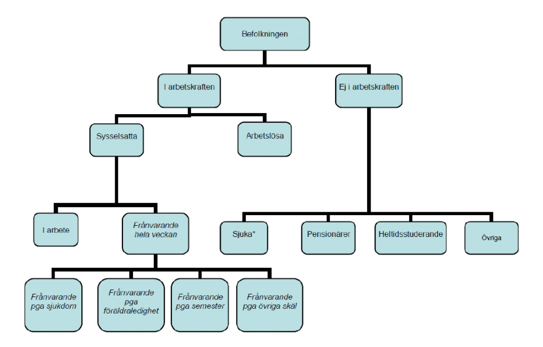 Begreppet att vara sysselsatt är märklig, “utfört minst en timmes arbete under en referensvecka”. Dessa faller alltså in i gruppen som utför arbete och icke frånvarande.