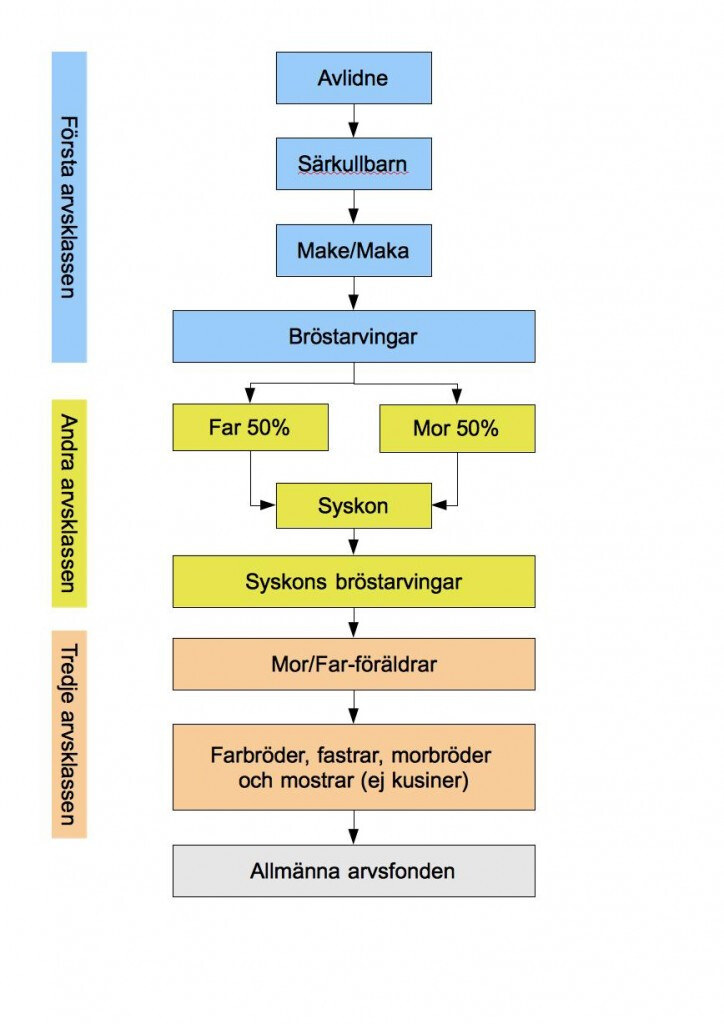 Enligt 3 kap. 8 § ärvdabalken gäller följande: “Finns det vid den efterlevande makens död arvsberättigade efter endast en av makarna, skall dessa arvingar ärva allt.” Bestämmelsen innebär att allt arv efter frun skulle gå till farbrors arvingar om inte frun har några egna arvingar i livet, det gäller även enskild egendom.