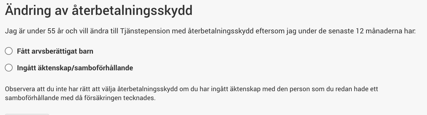 För pensionen finns det ju möjlighet att välja återbetalningsskydd. Det rekommenderas man normalt inte göra. Man får högre pension iom de arvsvinster som man får ta del av när man inte har återbetalningsskydd.