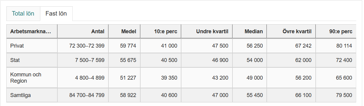 Jag upplevde att SACOs lönesök var väldigt exakt med löner och matchade världen rätt bra när jag tittade själv, så länge det fanns tillräckligt många svar i enkäterna och man valde rätt segment. För brett och det slår fel.