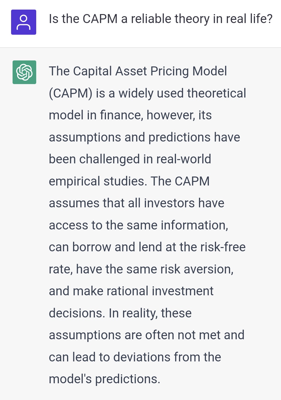 Såhär skriver ChatGPT om CAPM (ingen säker källa men tog med det eftersom du själv hänvisade till den tidigare i tråden):