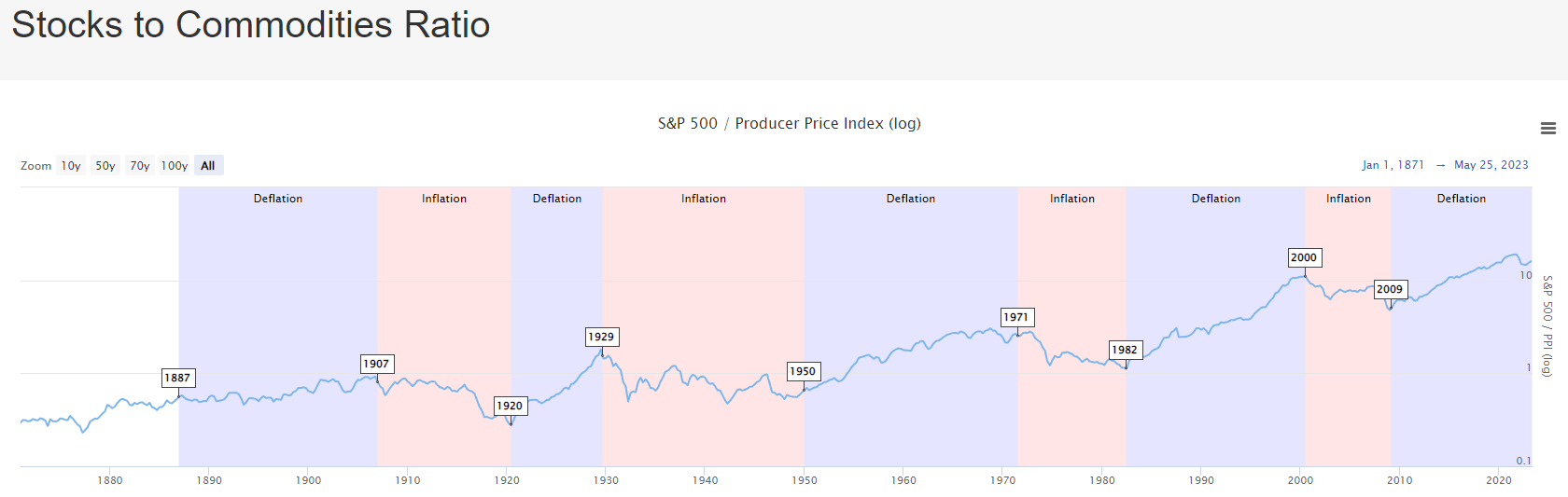 Källa: Stocks to Commodities Ratio - 151 Year Historical Chart | Longtermtrends