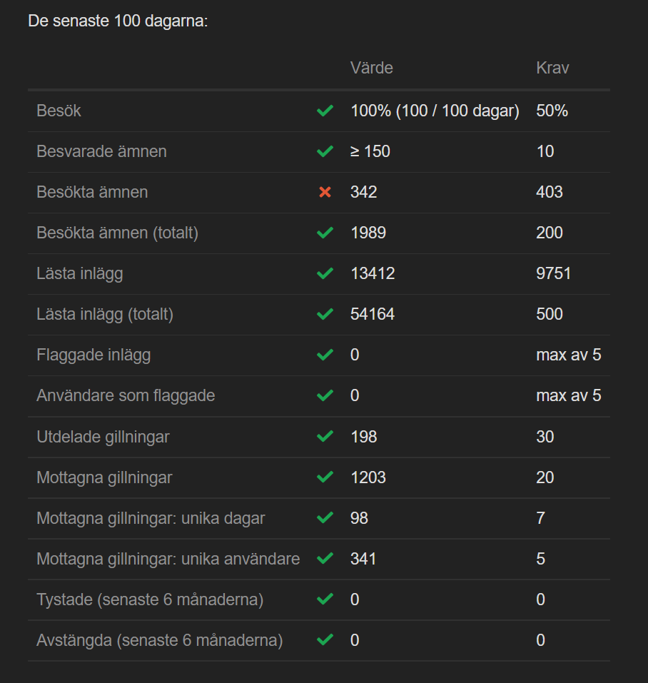 Förvisso, men i kontexten i den här tråden där det pratas om nivå 3 och över så hjälper inte så mycket att veta att man t.ex. är på “Förtroendenivå regelbunden”, om man inte vet vad för siffra det motsvarar.
