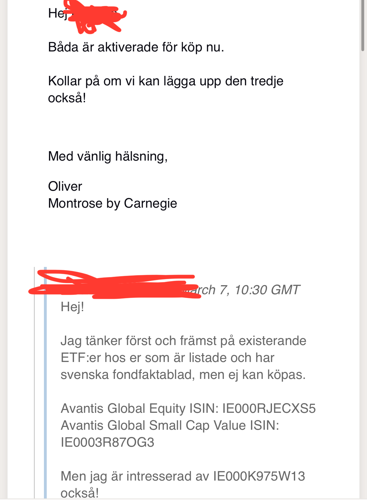 Trycker på mot kundtjänst för att de ska bli det och att AVEM för tillväxtmarknader också trillar in. Fast den verkar inte ha ett faktablad hos Nordnet än.