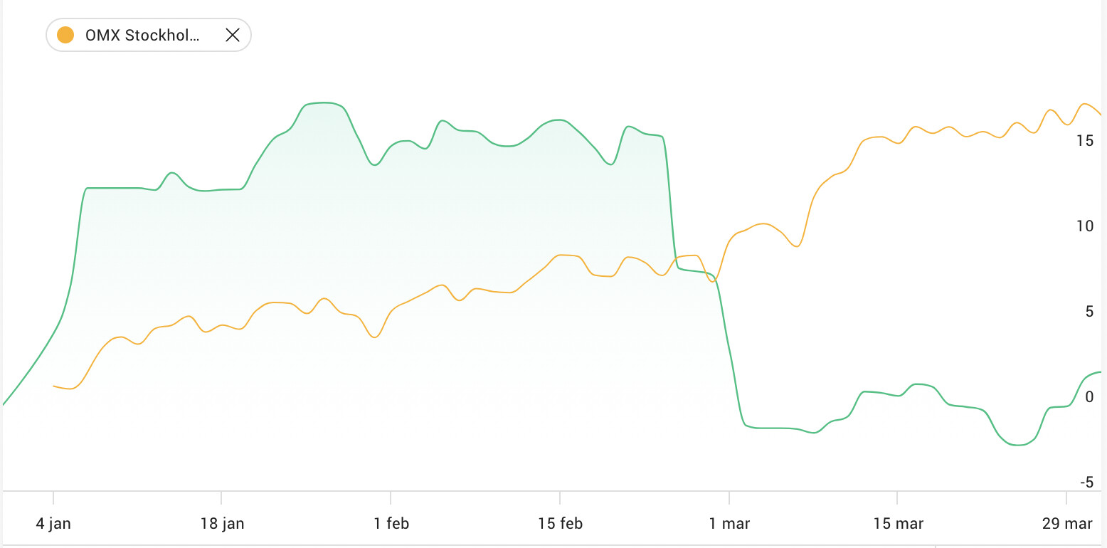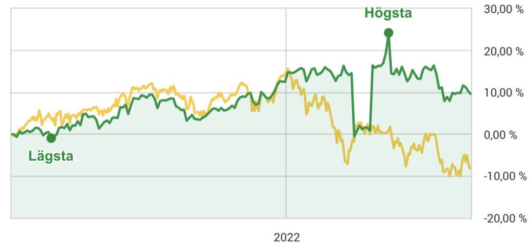 Bilden visar hur det ser ut för mig. Är det någon här som har samma problem? Dippen är runt påsk och helt orimlig. Toppen kort efter är också helt orimlig. Jag har massor av olika aktier i den här depån - en enskild kan aldrig skapa dessa rörelser.