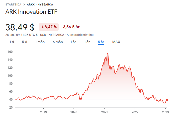 1 % är ca 0,8% högre än en globalfond. Från toppen så har den förlorat -76% i ARK Innovation ETF som den ska efterlikna. Tror man inte att marknaden är effektiv kanske det är ett intressant alternativ. Tidigare investerade de i en hel del aktier med låg likviditet.