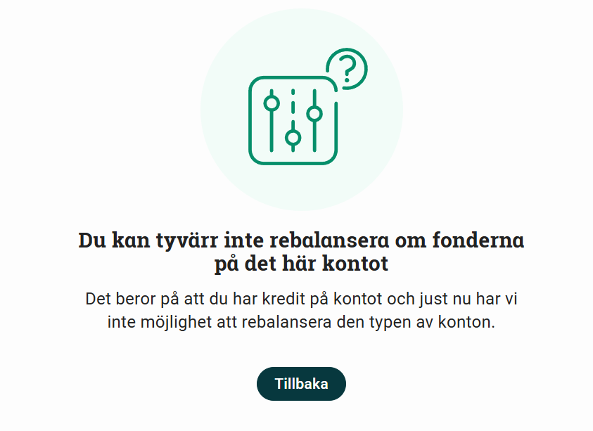 Inte vad jag kan se och man verkar inte heller kunna ha en stående förbestämd målvikt för innehaven som rebalanseras med ett knapptryck. Man behöver alltså knappa in fondernas fördelning manuellt när rebalansering ska göras. Det är ett steg i rätt riktning men det är en bit kvar innan den kan sägas vara automatiserad. Det kräver fortfarande att man ser över portföljen manuellt.