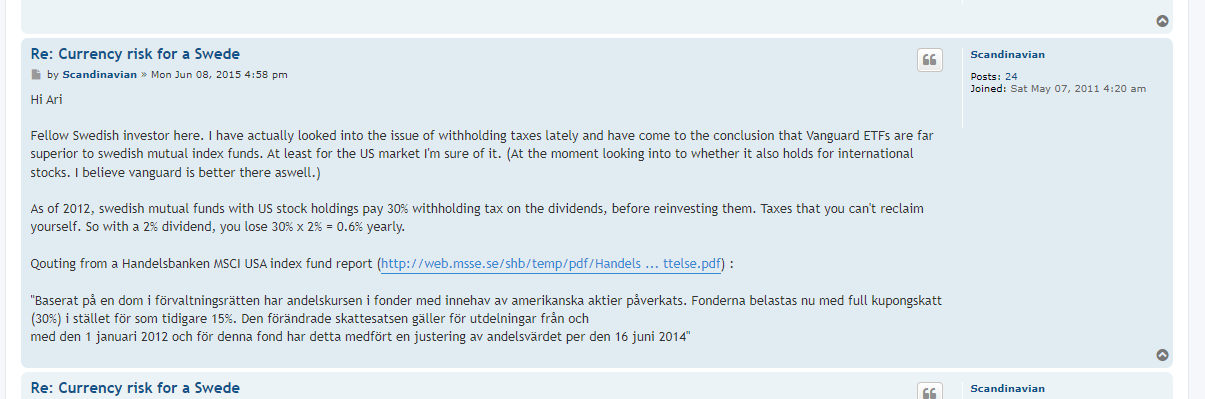 Jag undrar lite om det här med US withholding tax som verkar vara på 30%(!) för amerikanska utdelningar inom fonder (reducerat till 15% när det gäller irsk registrerade ETF).