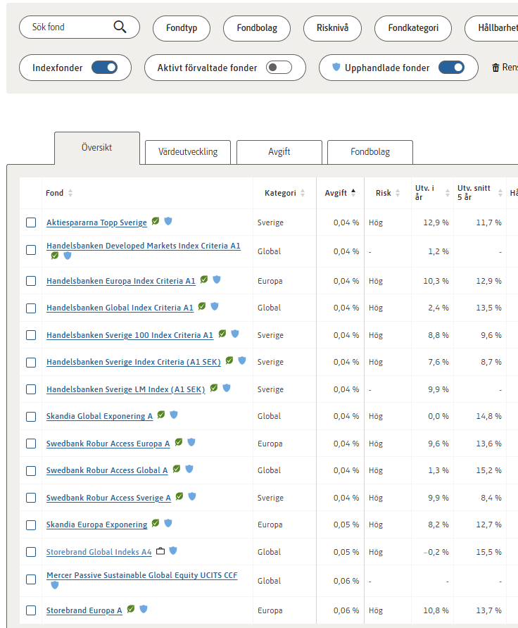 Min far fick idag besked att de flyttar hans innehav i Storebrand Sverige A (180+ företag) till Aktiespararna Topp Sverige (30 företag, typ som Avanza Zero).