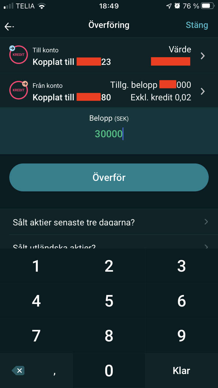 Men det skulle som sagt innebära att du konstant ligger på belåning på ditt ISK, men så länge det är under 50k och med vissa villkor är det ju gratis på Avanza så ser inte det direkt som dumt. Bara komplicerat Det är ingen skatt eller avgift för att göra överföringar mellan kreditkonton, då de tekniskt sett är utanför både ISK:t och KF:en. Efter börsnoteringen om det inte blev tilldelning kan du ju bara föra över det tillbaka till ursprungliga kreditkontot för att bli av med belåningen om det är mer än 50k eller du får betala ränta pga för lågt innehav på ISK:t