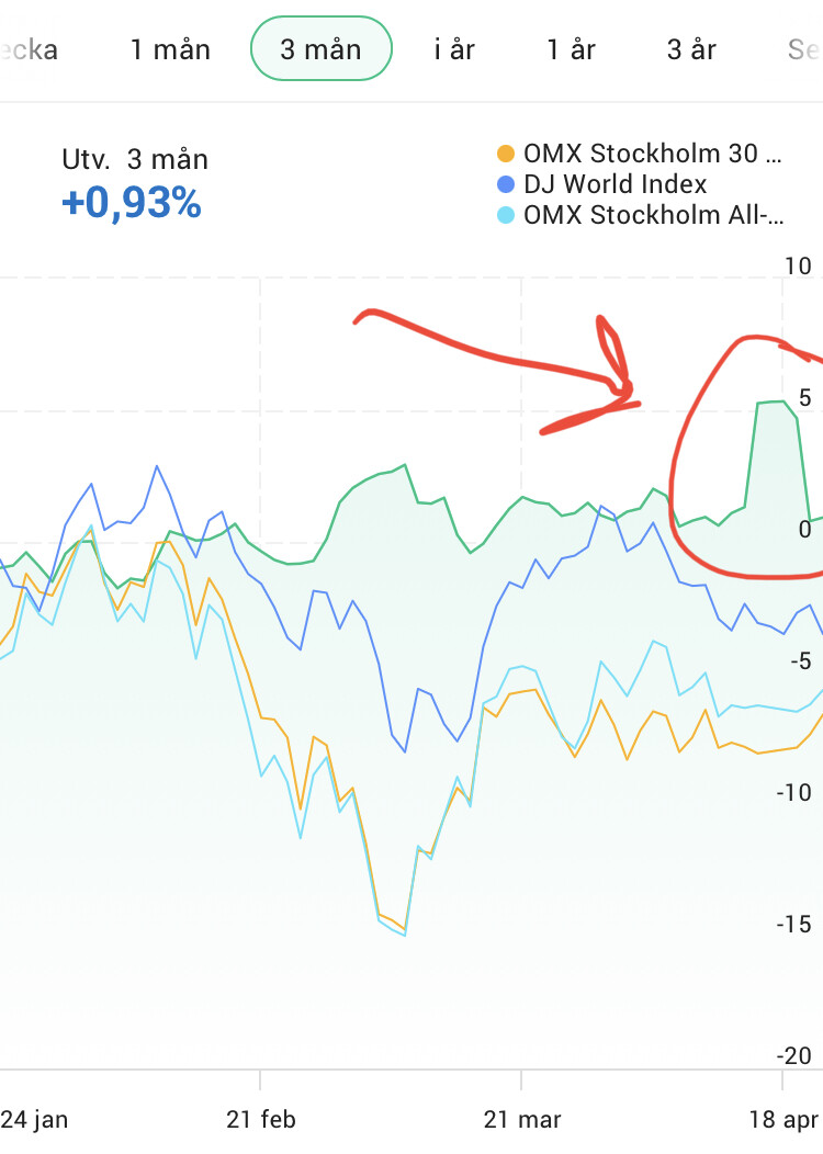 Svarar på mitt eget inlägg. Nu ser det ut såhär. Puckeln är borta. Verkar varit för mycket påskmust på Avanza.
