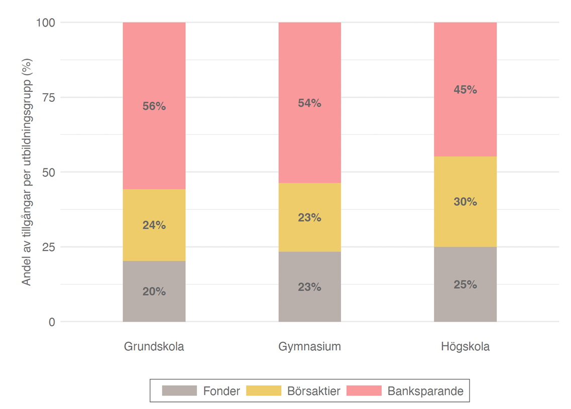 Sammanfattningsvis har statistiken i detta kapitel visat att utbildningsnivå har betydelse för hur man placerar sitt sparande och även sin övriga förmögenhet. Högre utbildade individer har ett större fondinnehav än lågutbildade individer. Intressant nog visade analysen att högutbildade personer med medelinkomst var mer påpassliga att placera sina fonder i en ISK, vilket har varit skattemässigt förmånligt under 2010-talet, än lågutbildade personer med en mycket hög inkomst.