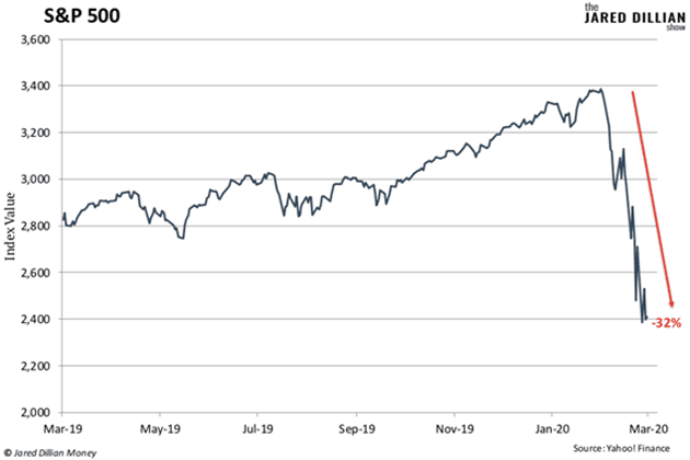 Let me walk you through an example. Think back to March 2020, when coronavirus fears kicked into high gear. Investors panicked, and stocks plummeted 32%.