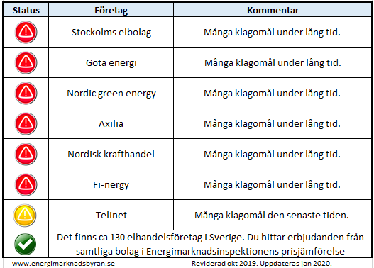 Rekommenderar även att kolla Energimarknadsbyråns svarta lista. Det är en dryg handfull företag som utmärker sig rejält. Namnen känns ofta bekanta från sökresultaten på Elskling.