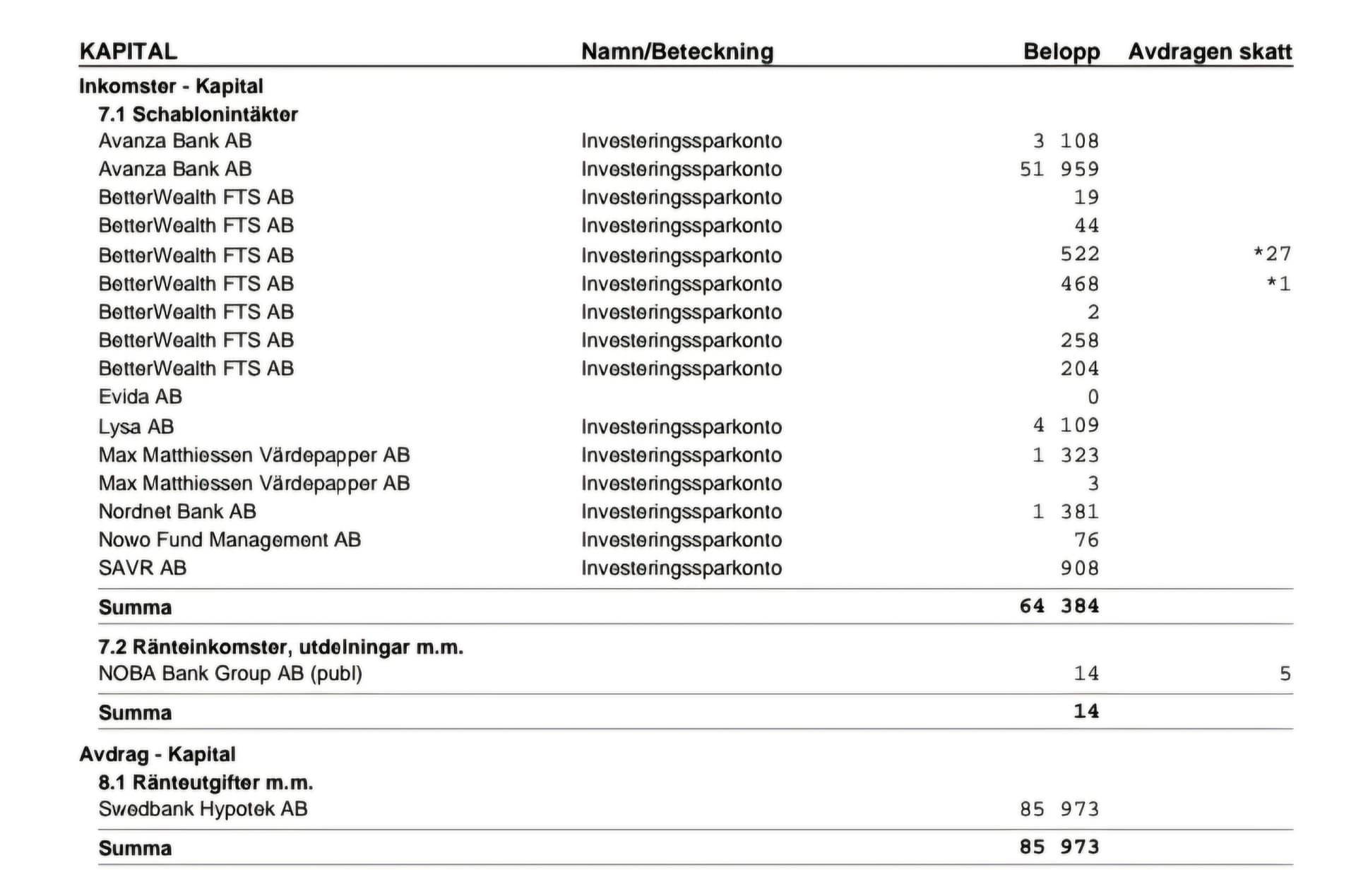 Det står även 85k som jag betalade ränta på mitt bolån, men varför står det 64,3-85?