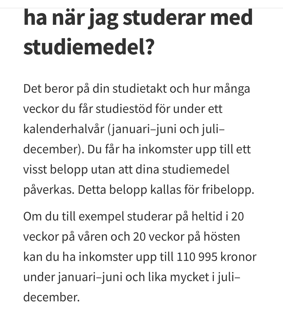 Men det knasiga i denna biten är att CSN kan inte se när du fick inkomsten. Så de tittar bara på deklarerad inkomst. Vilket blir årsvis.