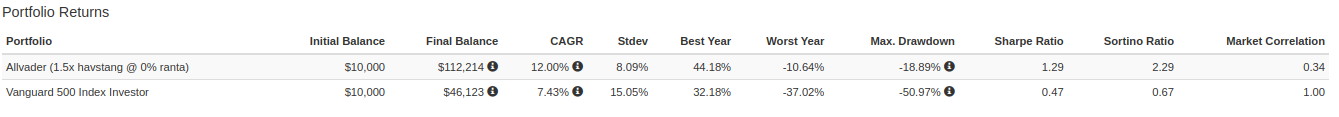 Så t.ex mellan 2001 och fram tills nu har allvädersportföljen haft en maximal nedgång