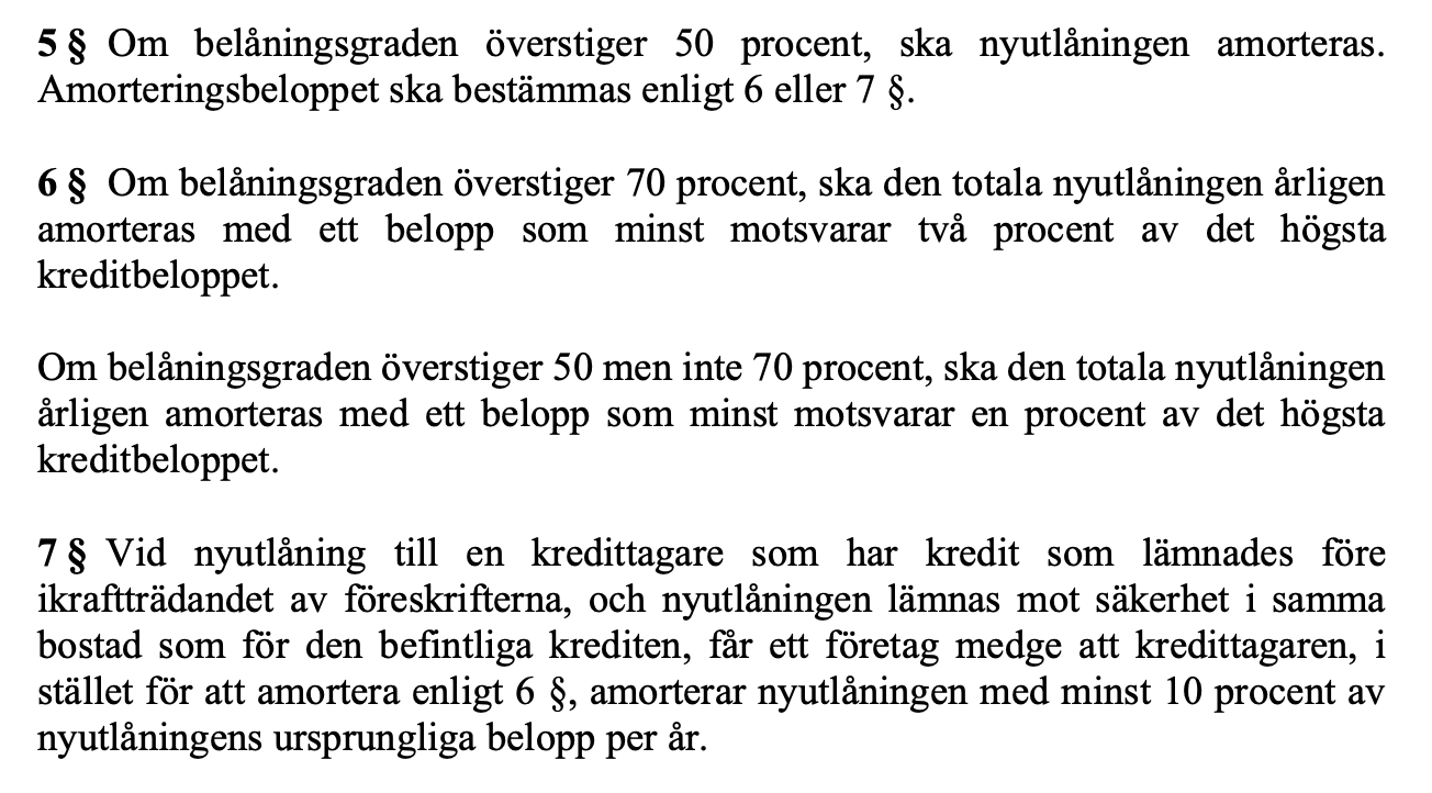 Däremot lär du knappast hitta någon bank som har bolån på detta sätt. Om inte annat skulle Finansinspektionen ha synpunkter på de lån som ligger över 70 procent av värdet på bostaden.
