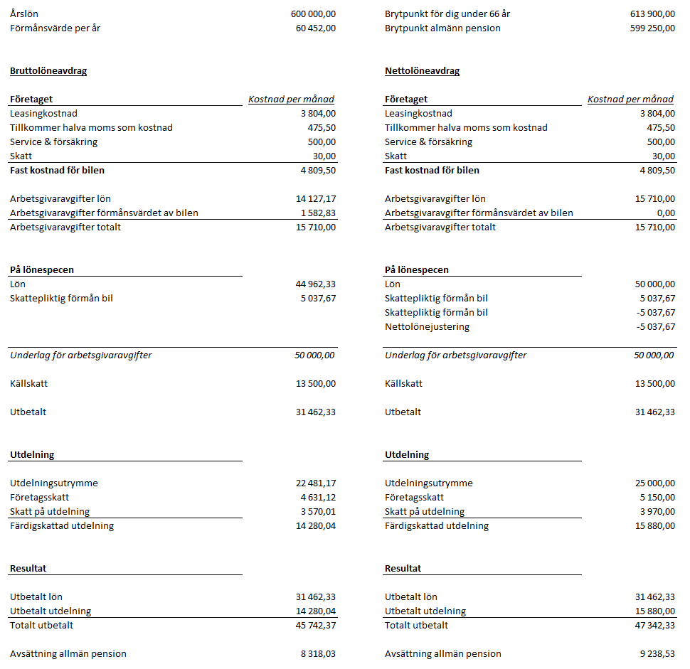 Tar man ut en bil på sitt AB så skall man betala skatt på förmånsvärdet, när är det i så fall mest lönsamt att betala förmånsvärdet helt o hållet via nettoavdrag för att slippa “förmånen”.