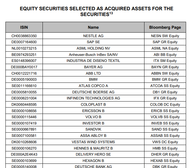 Om du till exempel läser prospektet för Avanzas “Guld Ava” så hittar du en lång lista med säkerheter som banken (Morgan Stanley) ställer upp som garant för att de ska kunna betala ut dina pengar. Säkerheterna i Guld Ava är aktier i framförallt svenska och tyska börsbolag. De har alltså inte köpt in något faktiskt guld.