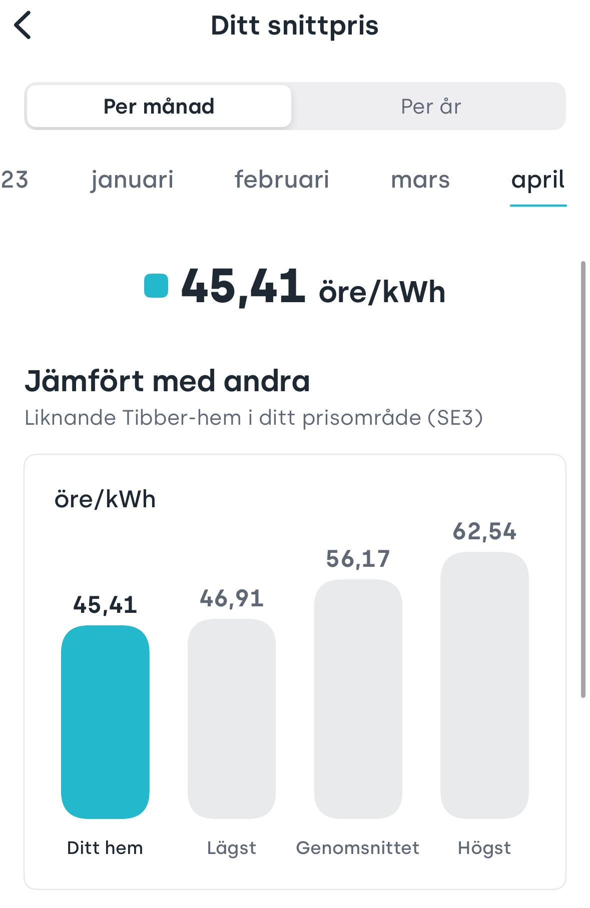 Vad skulle du binda på? Mitt snittpris med Tibber hittills i april (SE4):