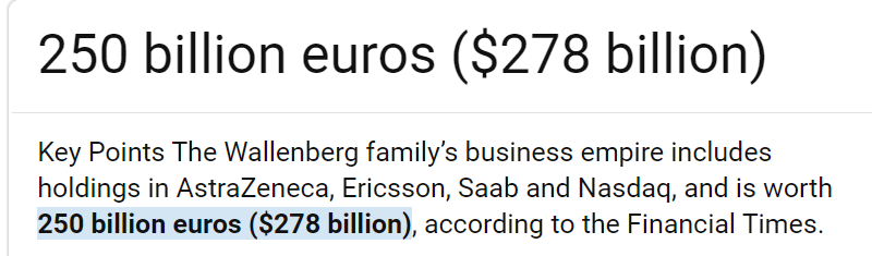 Läs till exempel om familjen Wallenberg som kontrollerar 40% av svenska börsen, 15 familjer i Sverige kontrollerar 70% av börsen…