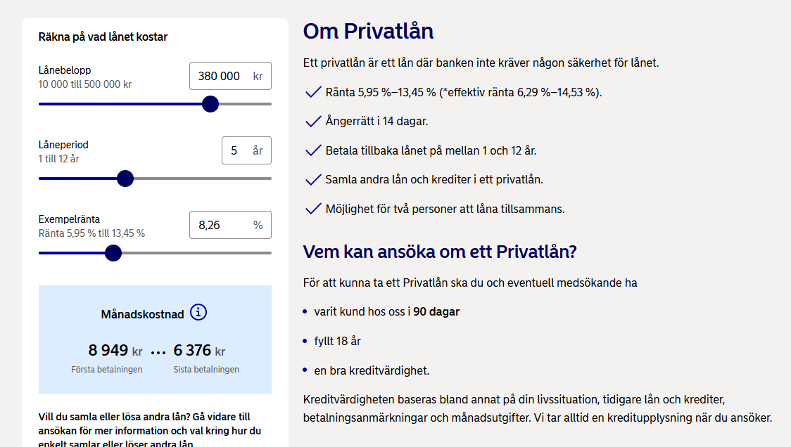 För som det är nu blir dina totala räntekostnader per år (utan Klarna, då jag inte vet räntan där) ca. 40.650kr. Detta är när du har lånet uppdelat hos Marginalen Bank och Klarna.