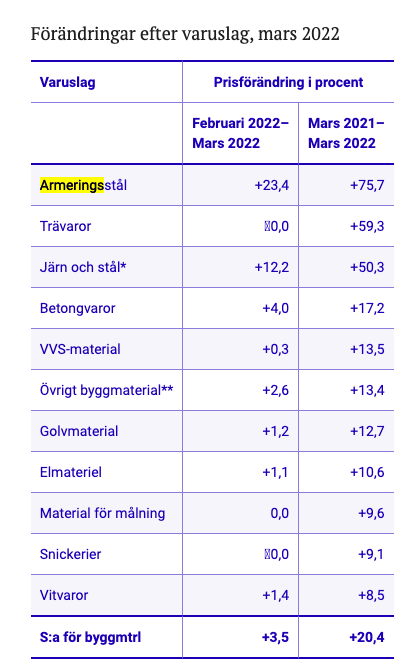 Byggkostnadsindex (tidigare benämning Faktorprisindex) för flerbostadshus steg med 1,5 procent i mars 2022 jämfört med februari 2022. Jämfört med mars föregående år steg byggkostnaderna med 9,6 procent. Stigande byggkostnader i mars 2022