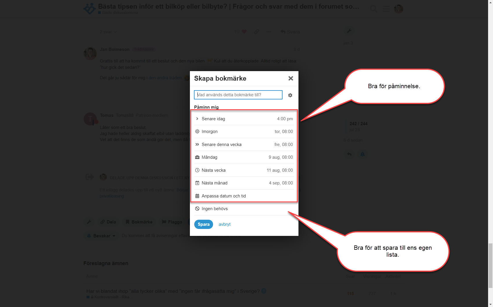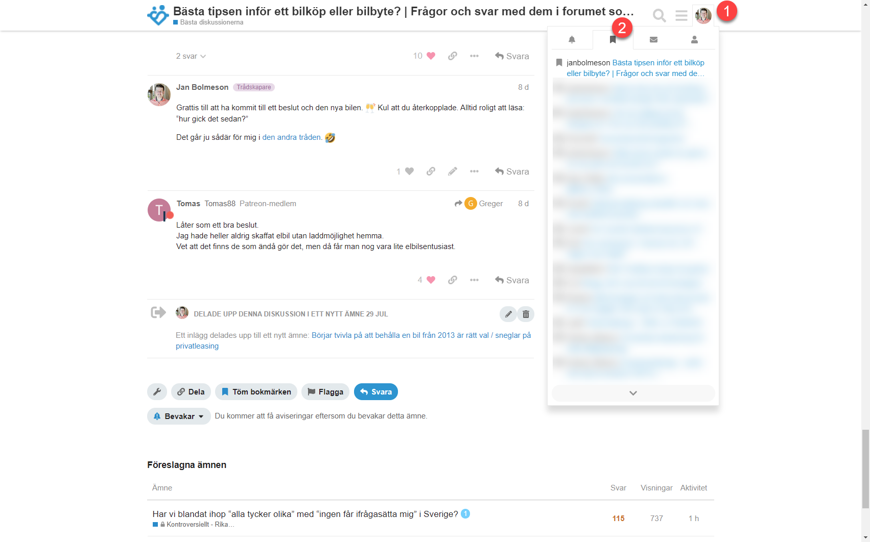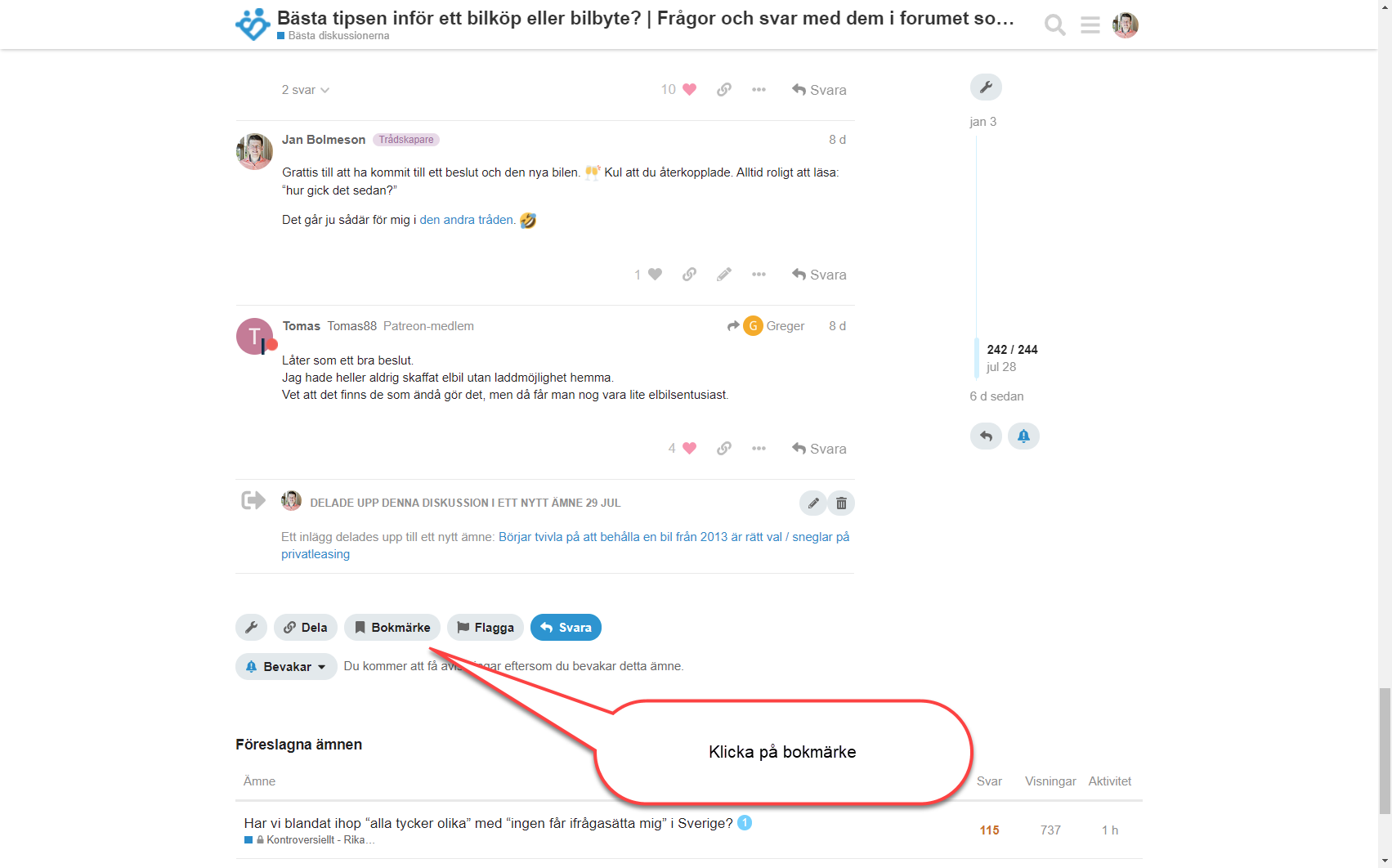 Jag har tidigare använt bokmärken till trådar jag läst men vill hitta tillbaka till enkelt, och det funkar som förväntat. Nu hittade jag det andra användningsfallet, nämligen en tråd som såg intressant ut men var alldeles för lång för att jag omedelbart skulle vilja ge mig i kast med den. I detta fall var jag tvungen att bläddra förbi alla olästa inlägg för att komma till Bokmärke-knappen varvid dessa inlägg markerades som lästa. Det skulle för detta användningsfall vara bättre om knappen fanns högst upp ovanför första inlägget i stället.