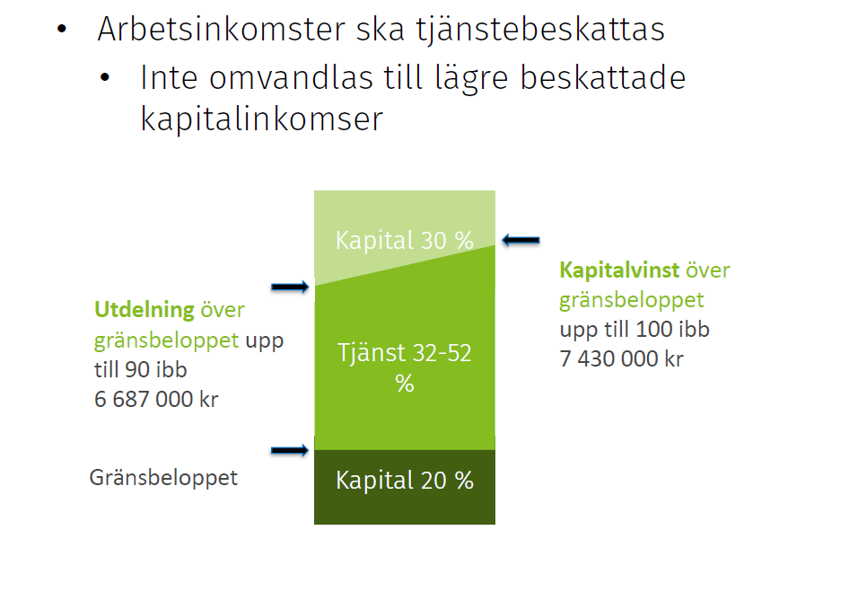 Nu är det nog något missförstånd. Bolagsskatten är 20,6% Skatten på utdelning inom ditt gränsbelopp är 20%, sen beskattas överskjutande kapital upp till ca 6,7 miljoner som inkomst av tjänst. Belopp därutöver upp till 7,4 miljoner beskattas med 30% kapitalskatt.