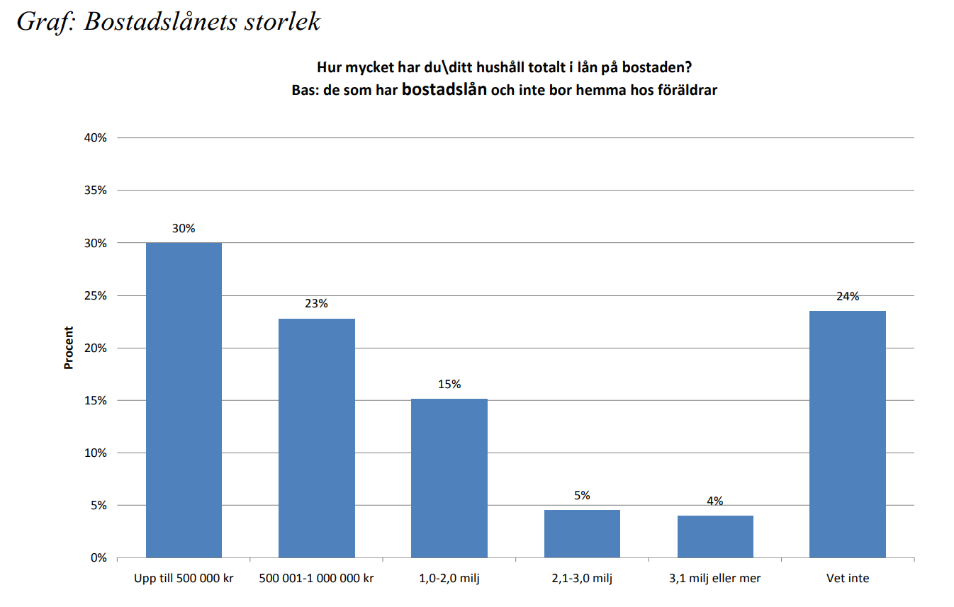 Det styrks av att enkäten frågade "Hur mycket har du\ditt hushåll totalt i lån på bostaden? i bilden nedan: