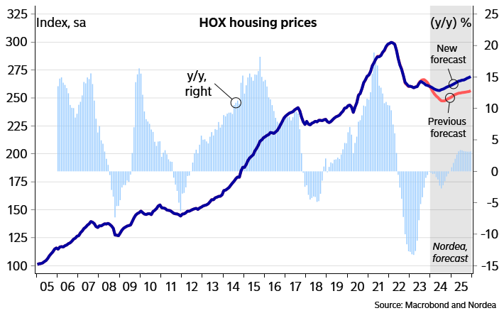 Nordeas makroekonomer brukar göra lite forecast på bostadspriser. Här är den senaste