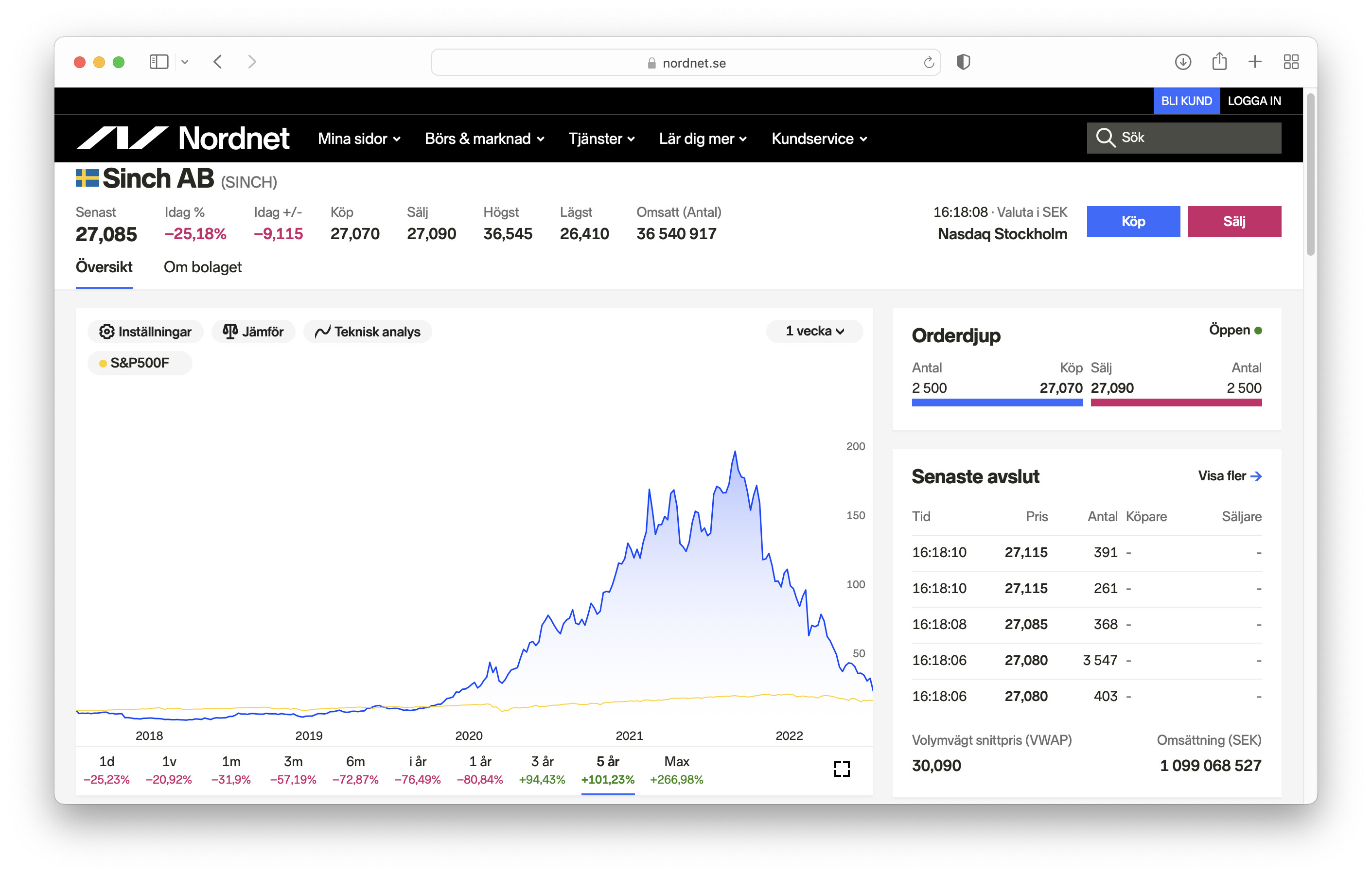 Har ingen aning om var rätt värde ligger och har inget direkt innehav i Sinch men om blankare fortsätter blanka efter 85% ner så bör man vara försiktig.