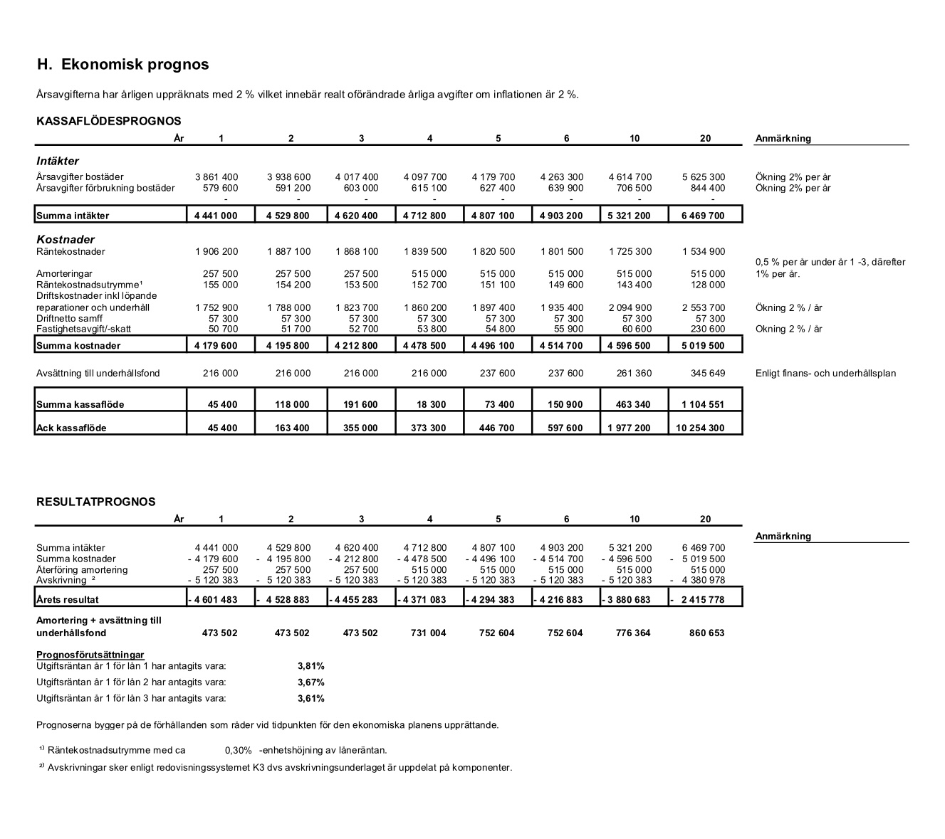 Bilden du la upp är ju en prognos, den spricker ju direkt för de där räntorna antar jag att de ej kan hålla initialt. Det lär därmed försvinna några hundratusen redan år 1. Avgifterna kommer sannolikt behöva ökas rätt omgående med 20-30% gissningsvis. Du får tänka en extra gång på att du faktiskt köper in dig på en stor gemensam skuld.