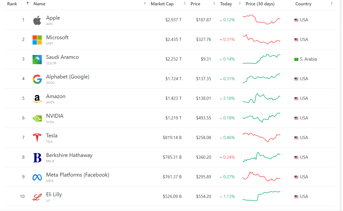 Highest valued companies (finns bara ett som inte är USA, och det är olja från Saudi):