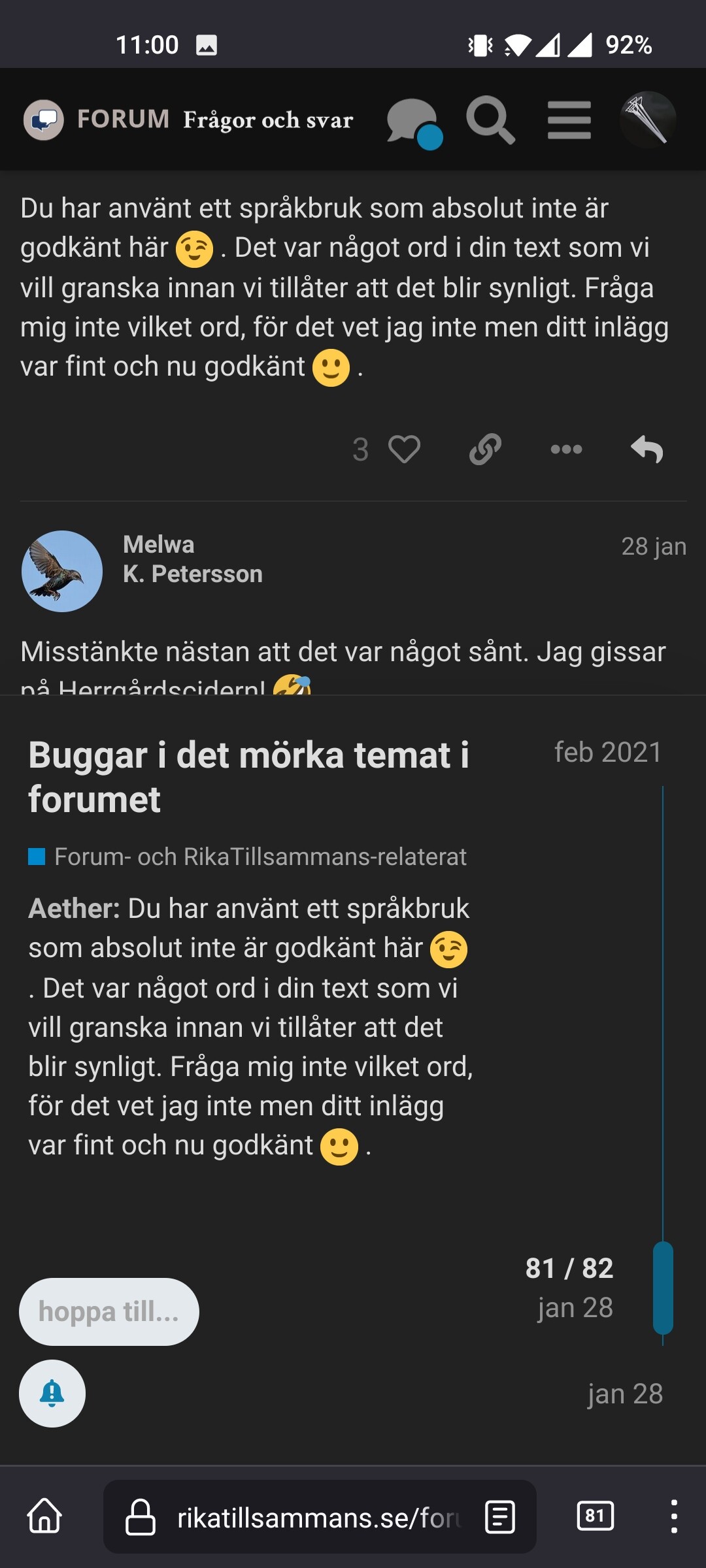 Jag har på senare tid märkt att jag automatiskt hamnar längst ner på sidan i en ny tråd jag inte redan har öppnat. Bifogar bild. Jag behöver alltså scrolla upp manuellt innan jag vet vad den handlar om. Hänt flera gånger under dagen. Någon annan som har upplevt samma?