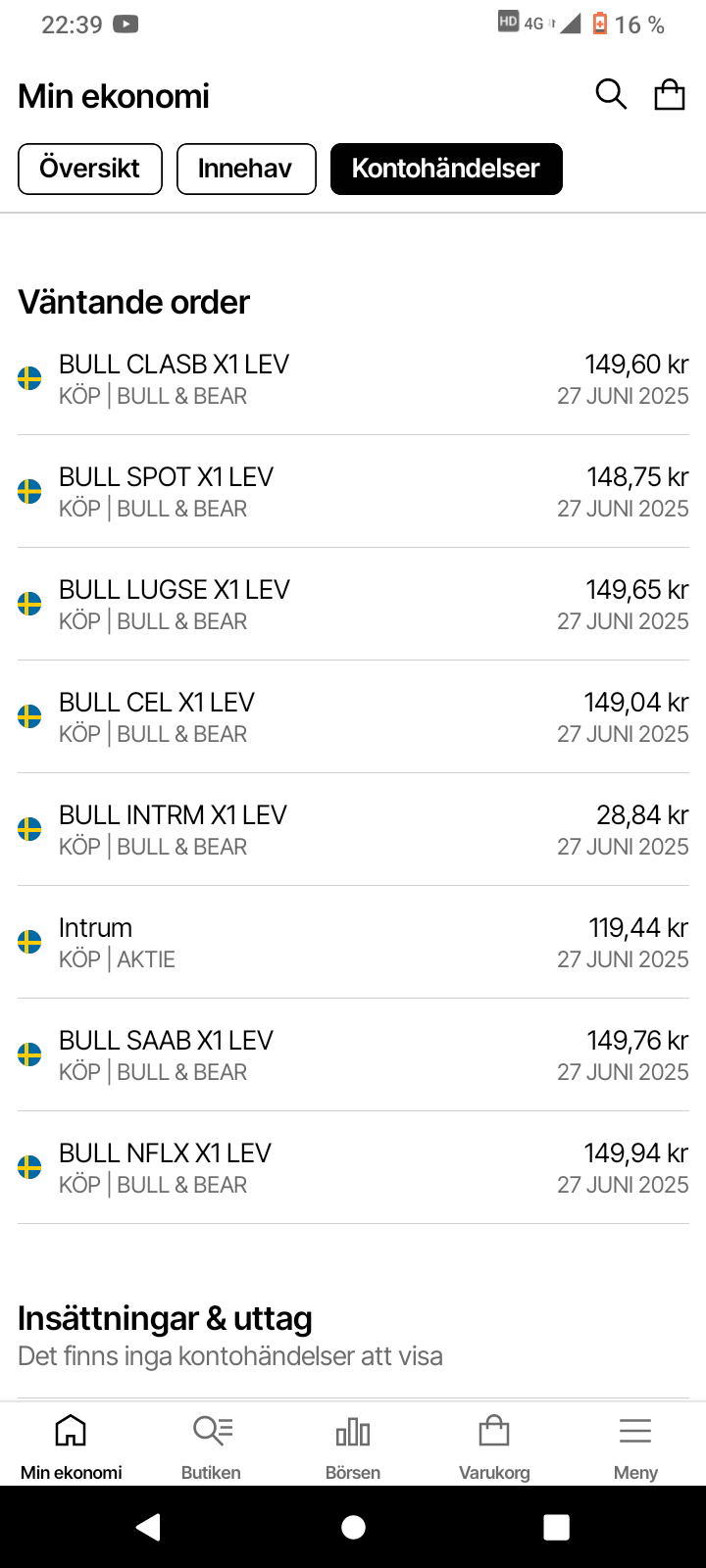 Gissningsvis har du lagt ordrar på köpsidan som inte mötts upp av några säljare. Vilken kurs ligger Intrum-ordern på? Senaste avslutet är 59,12 SEK.