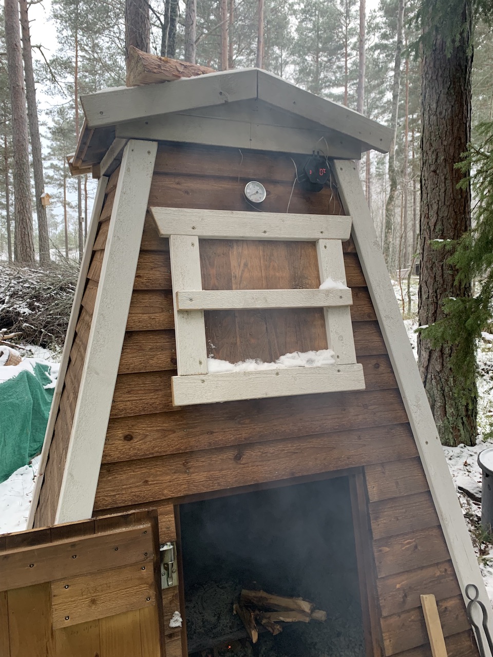 Jag och min pappa byggde en rökkåta på landet för några år sedan. Antagligen inte den mest effektiva på att röka då det är lite pyssligt att få rätt temperatur men kul projekt och att röka mycket är den väldigt bra på.