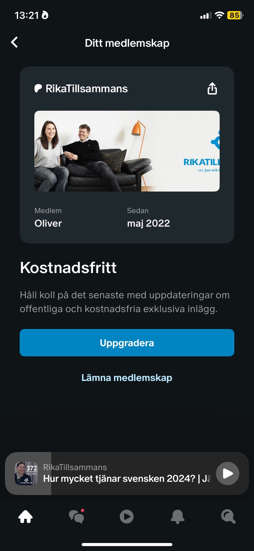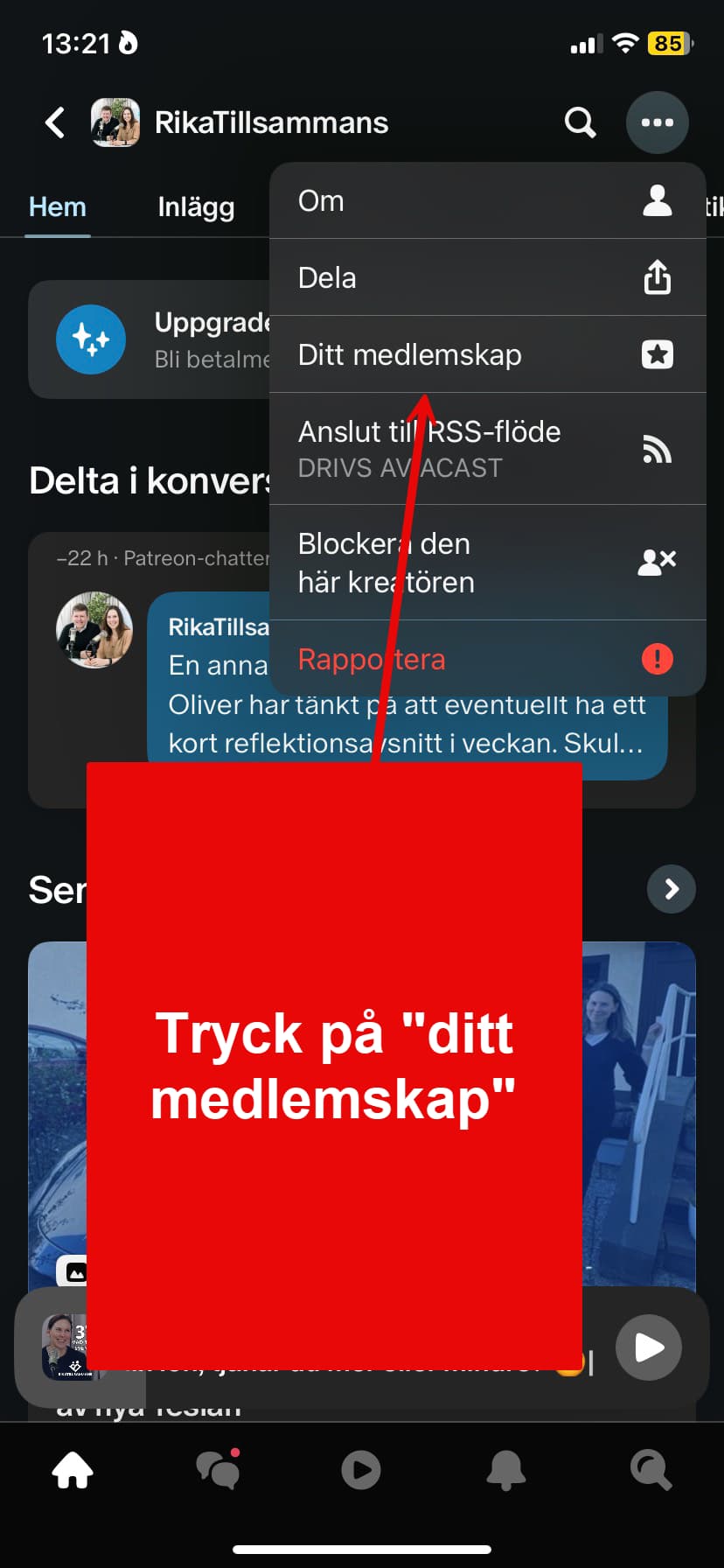 Följande guide visar hur du kan ned- eller uppgradera ditt medlemskap för Rikatillsammans Pаtreon på dator och i Patreonappen.