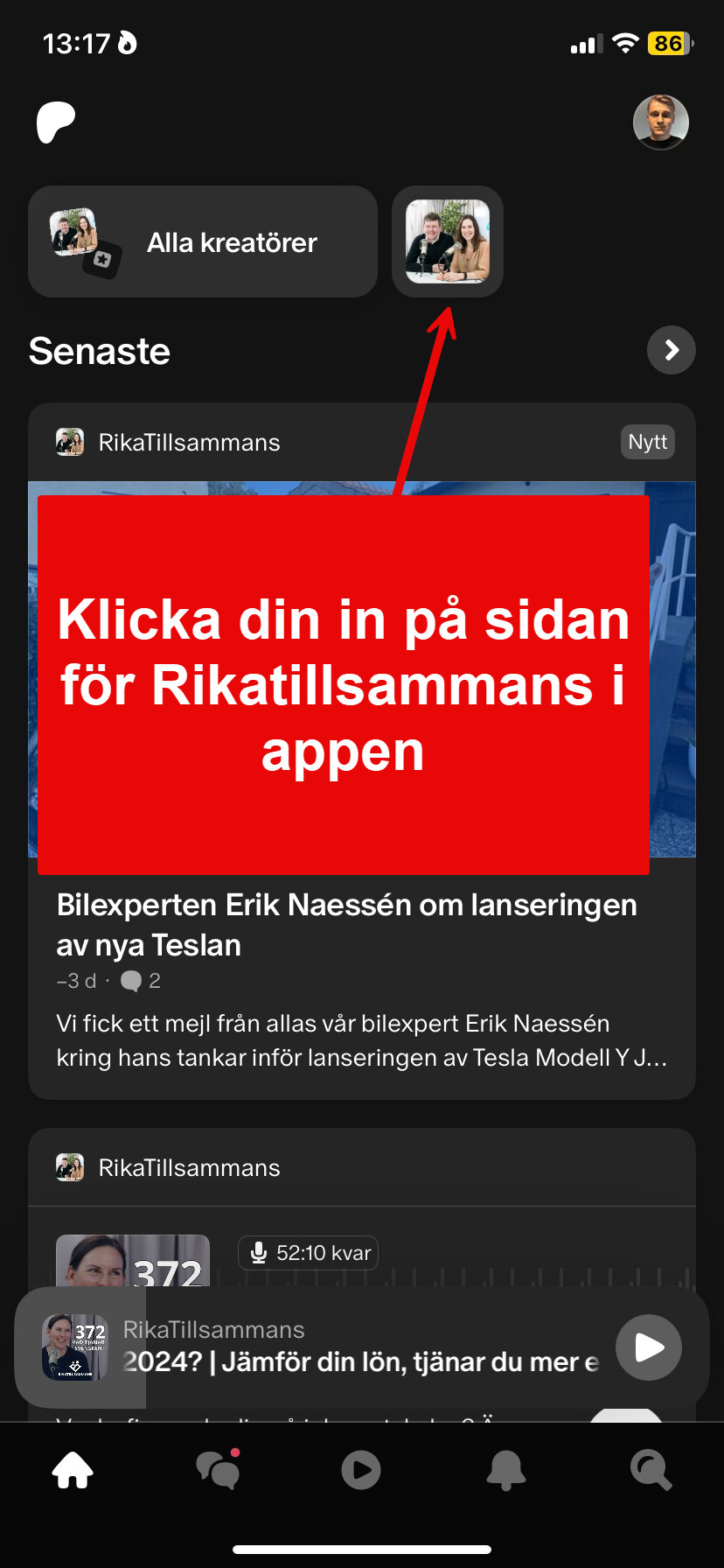 - Klicka dig in till Rikatillsammans Patreon flöde: