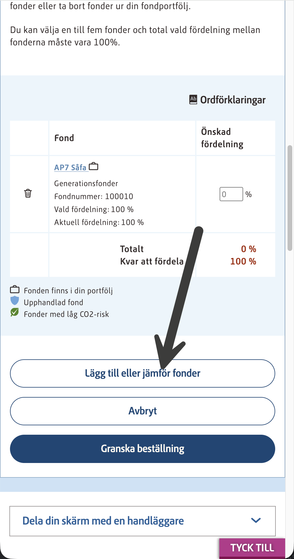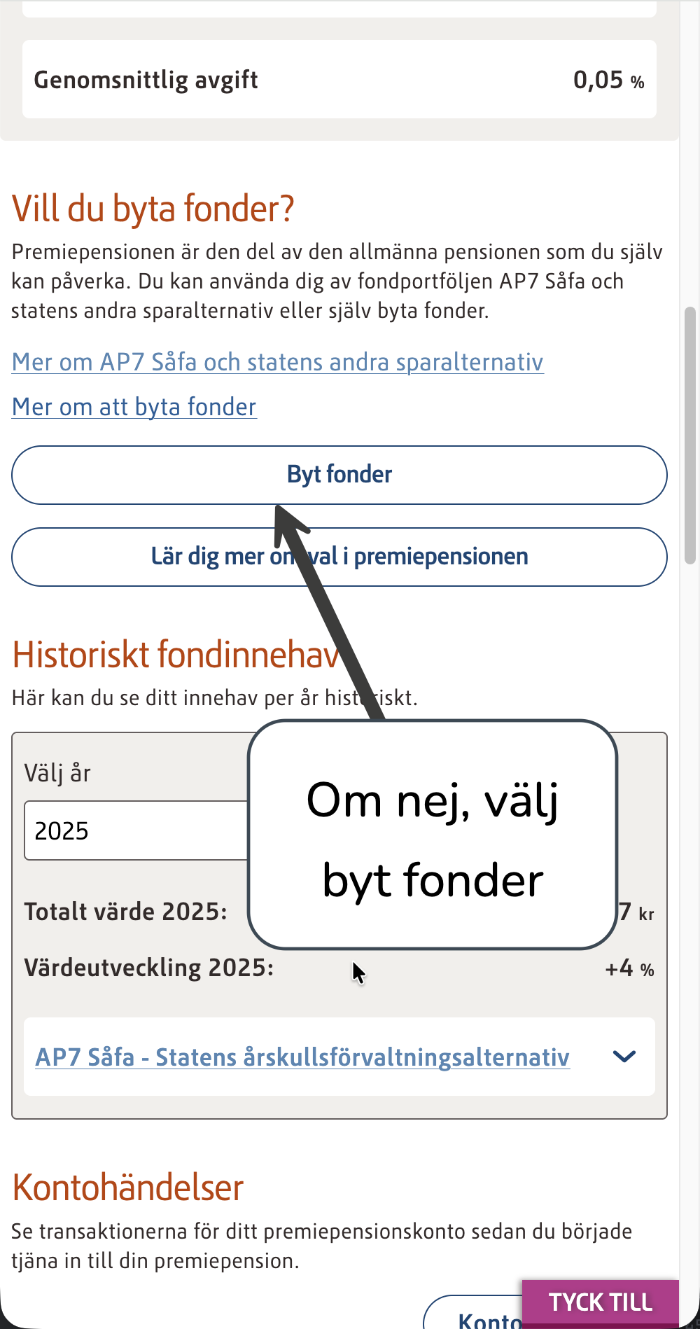 ) - Om du inte har AP7 Såfa, välj “byt fonder”