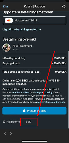 Följande guide visar hur du kan ändra valutan för Rikatillsammans Pаtreon på dator och i Patreonappen.