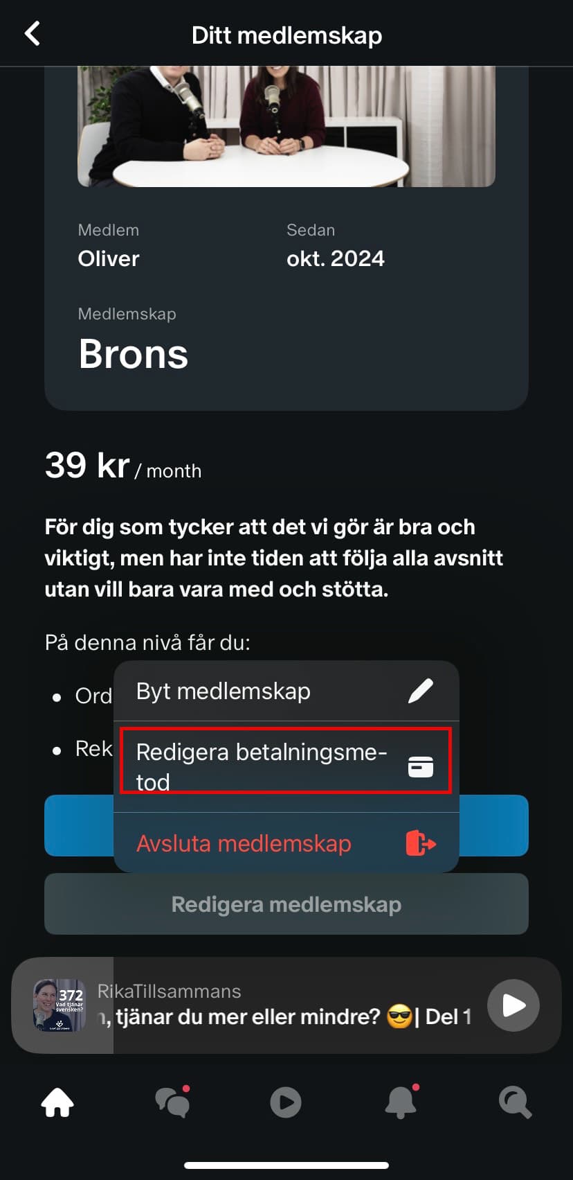 - Klicka på redigera betalningsmetod: