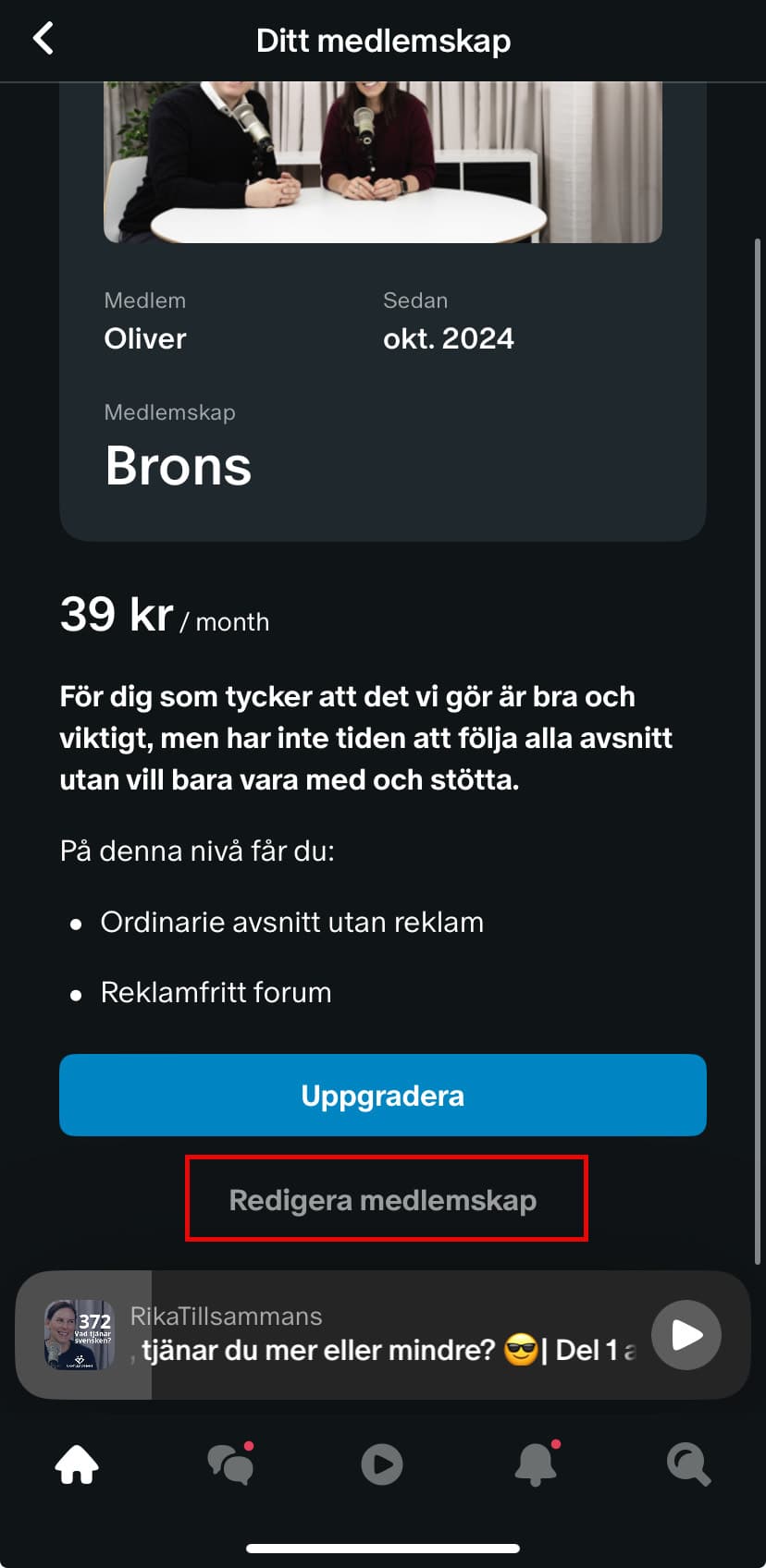 - Klicka på redigera medlemskap: