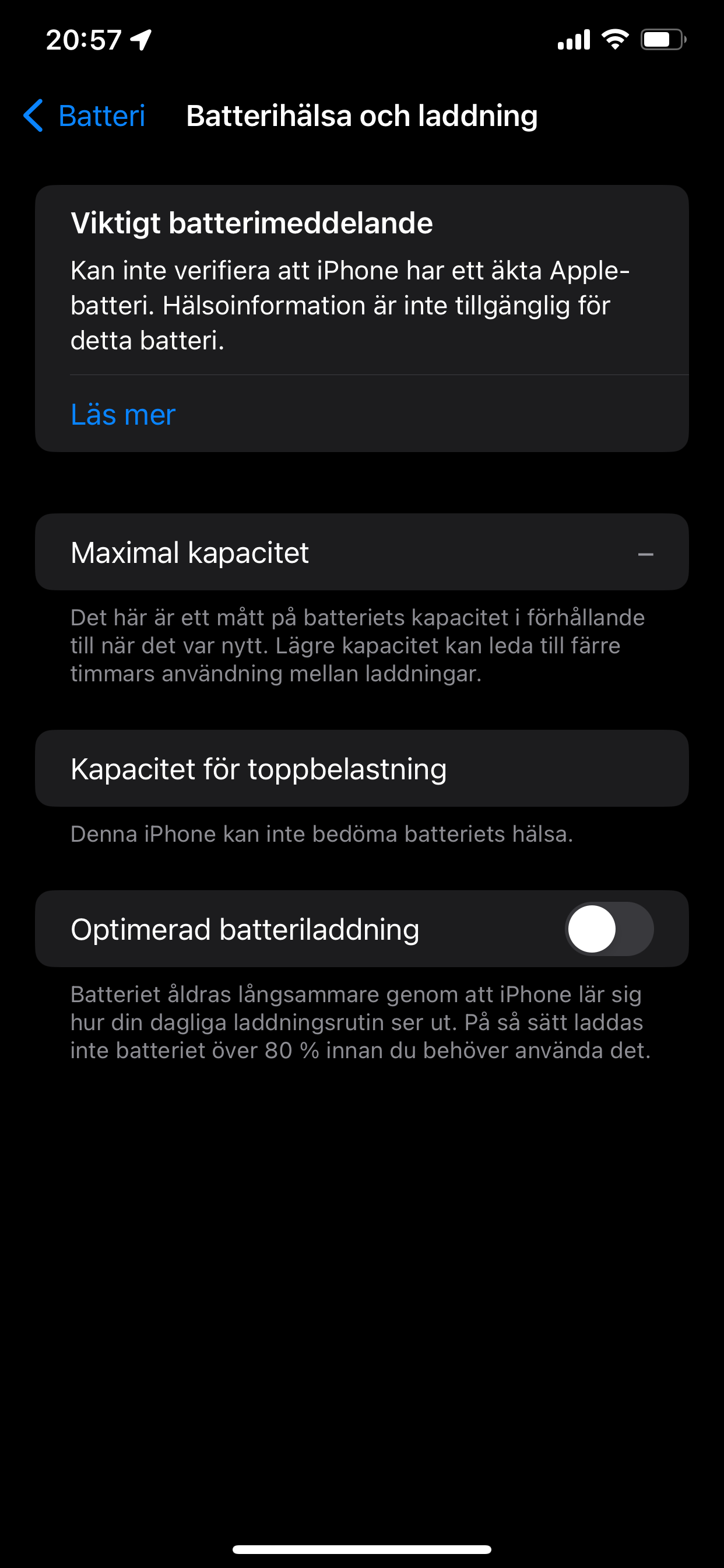 Jag har själv en iPhone X Max. Bytte batteri efter några år hos random mobilserviceaktör. Telefonen blev skitdålig. Det var då jag lärde mig vad som händer med iPhones om man servar hos oauktoriserade verkstäder. Jag köpte skal med extra batteripack så fick det va så. Nu i vintras var jag i Thailand och då passade jag på att lämna in för nytt batteribyte hos random mobilverkstad. Det var en chansning men den blev som helt ny igen och för nästan inga pengar.