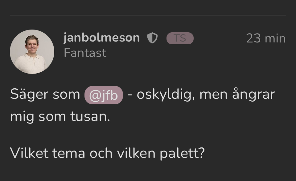 Har också rosa när jag taggar nån @janbolmeson