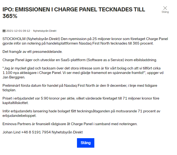 Med tanke på hur bra aktierna i Garo och CTEK har gått så tror jag man är skyldig sig själv att ta en titt på detta företaget. Elbilshypen fortsätter i USA med RIVIAN etc.