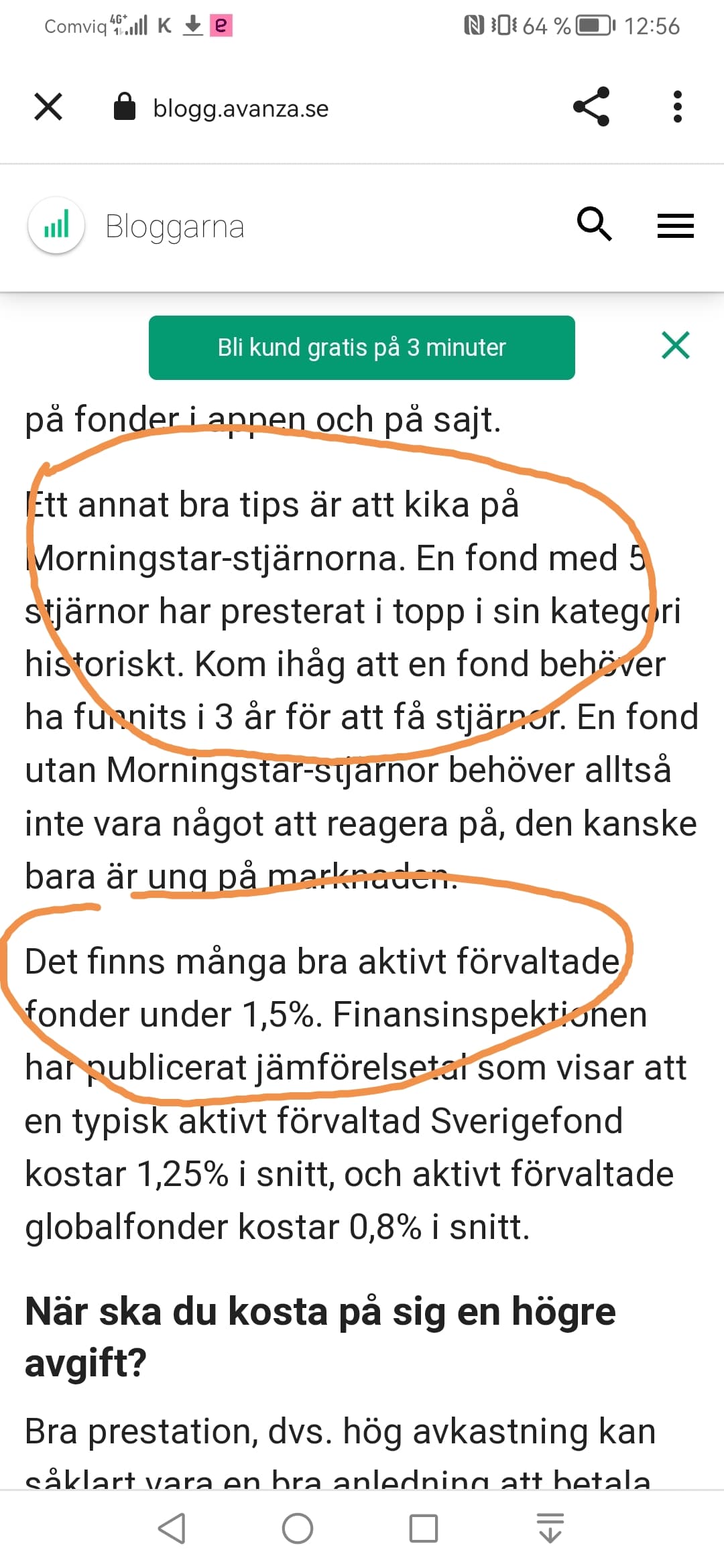 Jag är kund hos Avanza men investerar enkom i passivt förvaltade indexfonder så jag kan inte säga att jag påverkas av dessa dyra fonder vars reklam flashar förbi både i appen och på hemsidan.